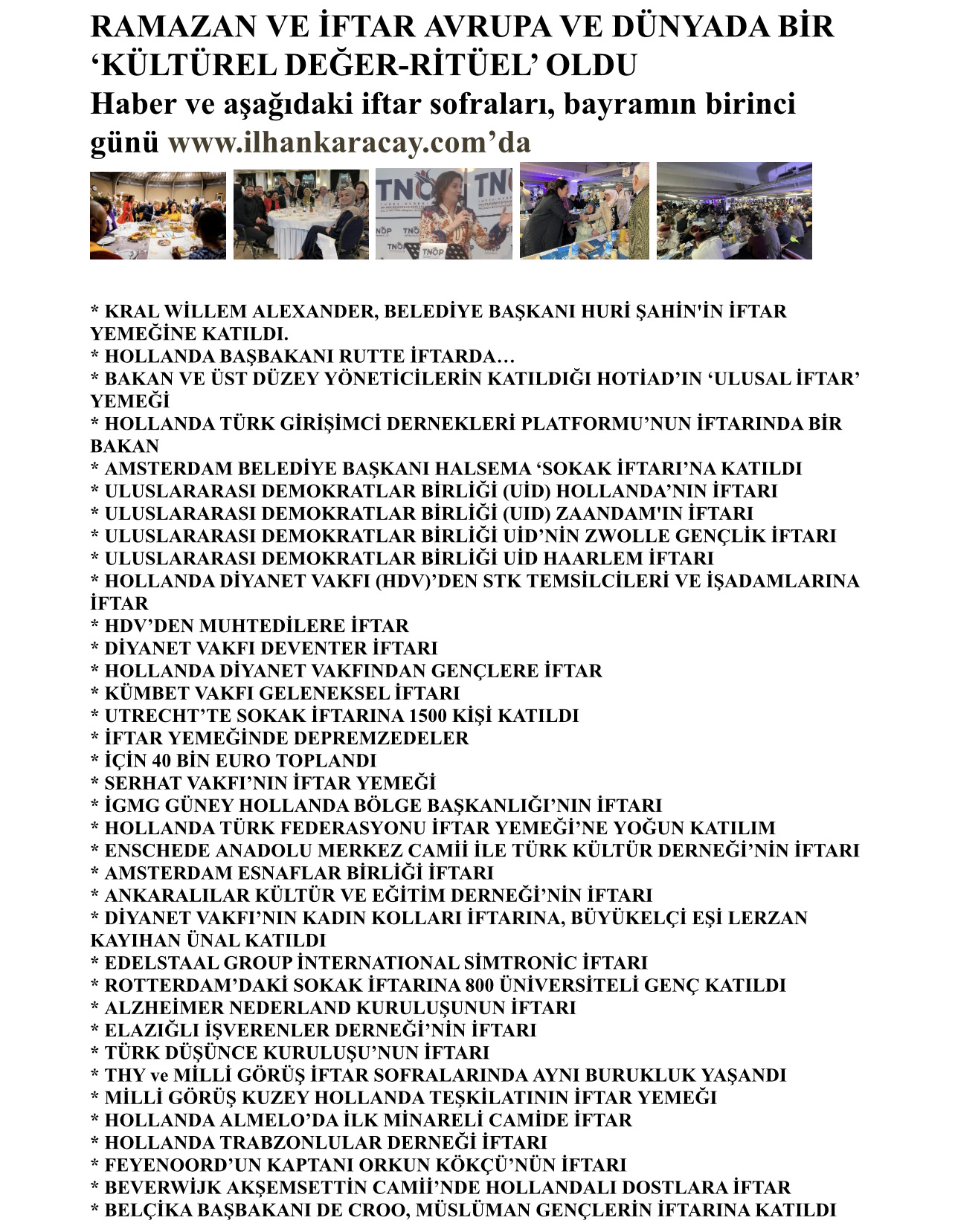 Devlet ve bilim adamları, iftar sofralarının müdavimi oluyorlar. Hollanda Kralı Willem Alexander, ilk Türk kökenli…